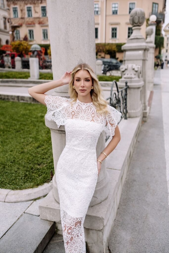Najposebniji modeli ove kolekcije zasigurno su Lanka i Nadia — haljine koje donose sasvim novu modnu priču. Ono što ih razlikuje jest upečatljiva, bogata i voluminozna odvojiva kragna. Oversize, raskošna i izrađena od pažljivo odabrane čipke, ova kragna može se nositi i uz druge odjevne komade — od jednostavne pletene haljine do elegantne veste — čime postaje statement dodatak koji transformira svaki styling. Same haljine mogu se nositi i bez kragne, čineći ih iznimno praktičnima i svestranima. Dolaze u crnoj i bijeloj boji, a teksturirana čipka s istaknutim bordurama naglašava blagdanski karakter i profinjenu svečanost. Ovi modeli obilježavaju novo poglavlje za La jupe — odvažnije, glamuroznije i još bliže visokoj modi, ali s prepoznatljivom romantičnom estetikom.