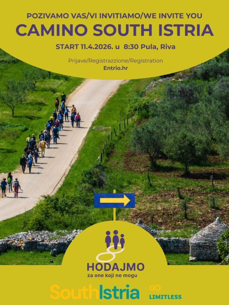 Najavljena je manifestacija Camino South Istria koja se održava treću godinu zaredom 11.4.2026. godine, a ove godine ima i snažnu humanitarnu dimenziju – prikupljanje sredstava za sufinanciranje nabave prilagođenog vozila za potrebe Društva osoba s tjelesnim invaliditetom južne Istre.