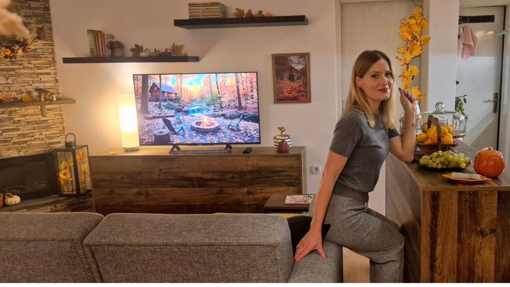 Iako Ivana nije eksplicitno govorila o jesenskom uređenju tijekom intervjua, njezini vizuali to govore umjesto nje: svijeće, staklenke s prhkim keksima, šalice i posuđe u obliku bundeve, mekane deke i jastuci, kamin koji je sama napravila, detalji iz prirode kao što su grane ili žirevi, cozy kutak za sjedenje ispred TV ekrana uz šalicu toplog čaja i crumble od šljive – sve to jasno povezuje njezin dom s ritmom godišnjeg doba. To je ujedno i savršeno odražavanje slow living filozofije: prostor koji te podržava u tome da živiš sporije, svjesnije i toplije.