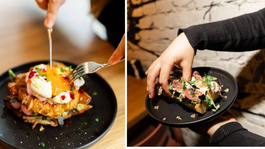 Jedno od jela koje se već sada izdvaja kao signature je jaje u croissantu – poširana jaja u croissantu punjen nježnom rozom kremom od cikle i sira, s dodatnim slojevima okusa koji ga pretvaraju u ozbiljno brunch jelo, a ne tek vizualno atraktivnu ideju. Jelo je istovremeno raskošno i suptilno, s jasno izraženim kontrastima tekstura.