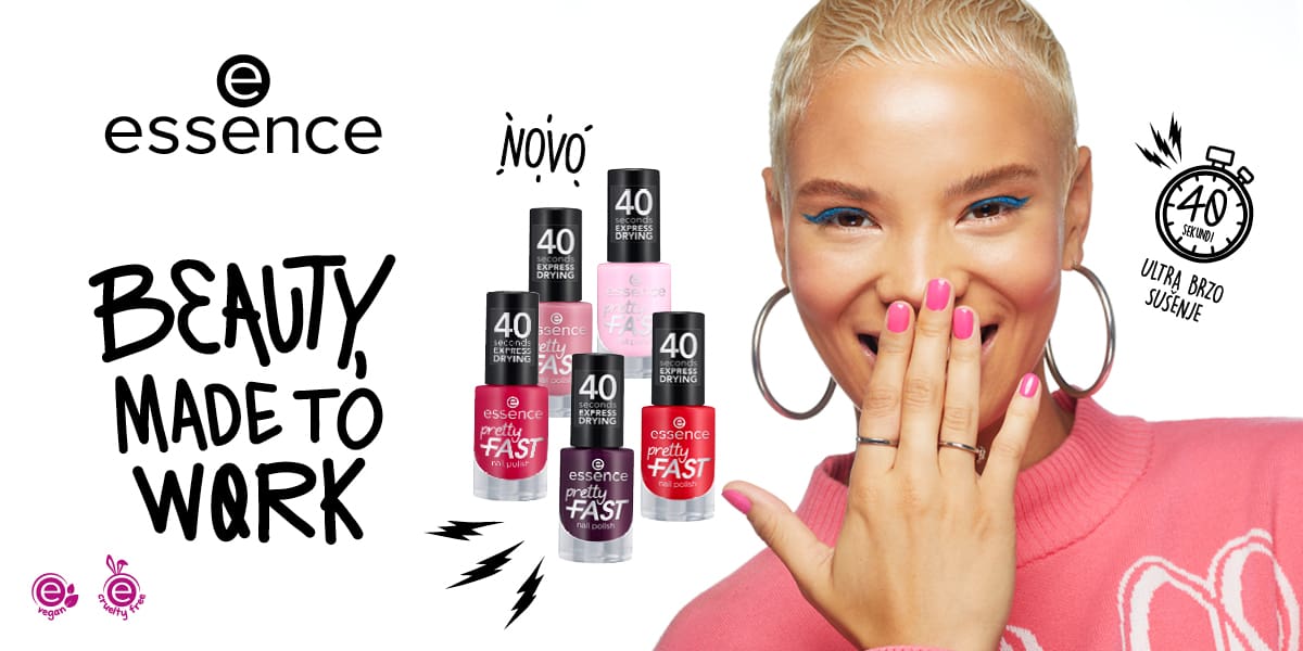 Predstavljamo nove lakove essence asortimana PRETTY FAST koji se suše u samo 40 sekundi! Treba samo malo više od pola minute da vaši nokti zablistaju sasvim novim sjajem!