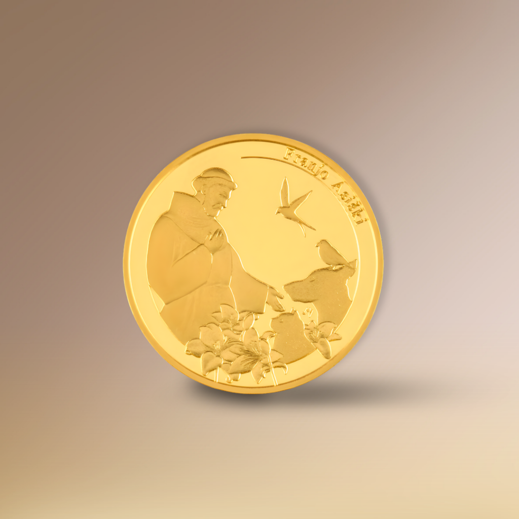 Sličan ton, ali s drukčijim simboličkim naglaskom, nosi zlatna medalja Svetog Franje Asiškog. Centar Zlata je opisuje kao idealan odabir za poklon i posebno naglašava da je prikladna za obilježavanje svetih sakramenata. Riječ je o medalji od 1,944 grama zlata čistoće 999,9/1000, hrvatskog podrijetla, a dodatnu vrijednost daje i podatak da likovno rješenje potpisuje akademska kiparica Jelena Mavrić Varga.