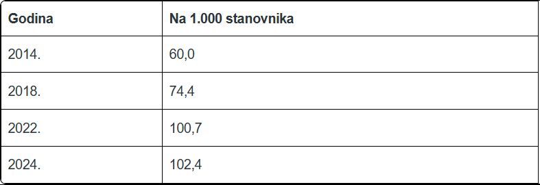 Per capita analiza za sve 21 županiju, koju je izradila Poliklinika Sursum Corda kombinirajući podatke HZJZ-a i procjenu stanovništva DZS-a za 2024., pokazuje da nacionalni prosjek iznosi 117,4 oboljele osobe na 1.000 stanovnika. No razlike među županijama su velike.