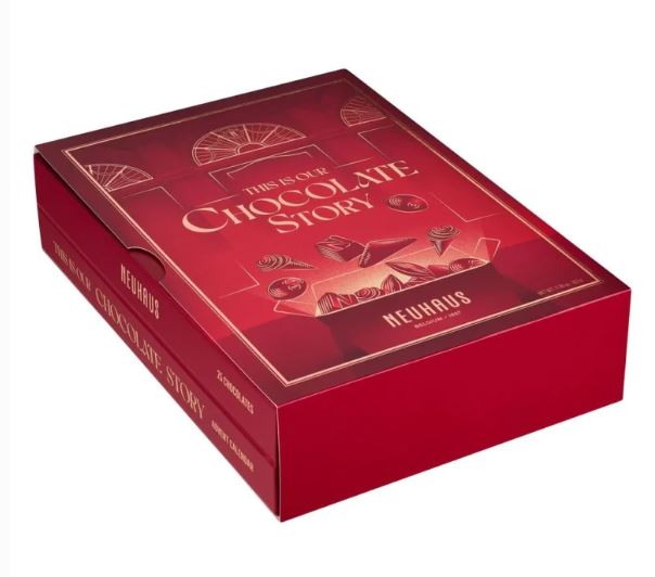 Ova raskošna “knjiga” otvara se u četiri blagdanske scene i prati ključne trenutke iz povijesti Neuhausa – od prve ljekarne u Galeriji de la Reine u Bruxellesu do legendarnog Expo 58 i nastanka slavnih Irrésistibles pralina. Iza 25 prozorčića skrivaju se pažljivo birane mliječne, tamne i bijele čokolade, a kao šećer na kraju tu je i jedna zvjezdasta čokolada iz limitirane kolekcije Les Souvenirs: zvijezda od mliječne čokolade punjena kremom od kokica s prstohvatom slanog karamela.