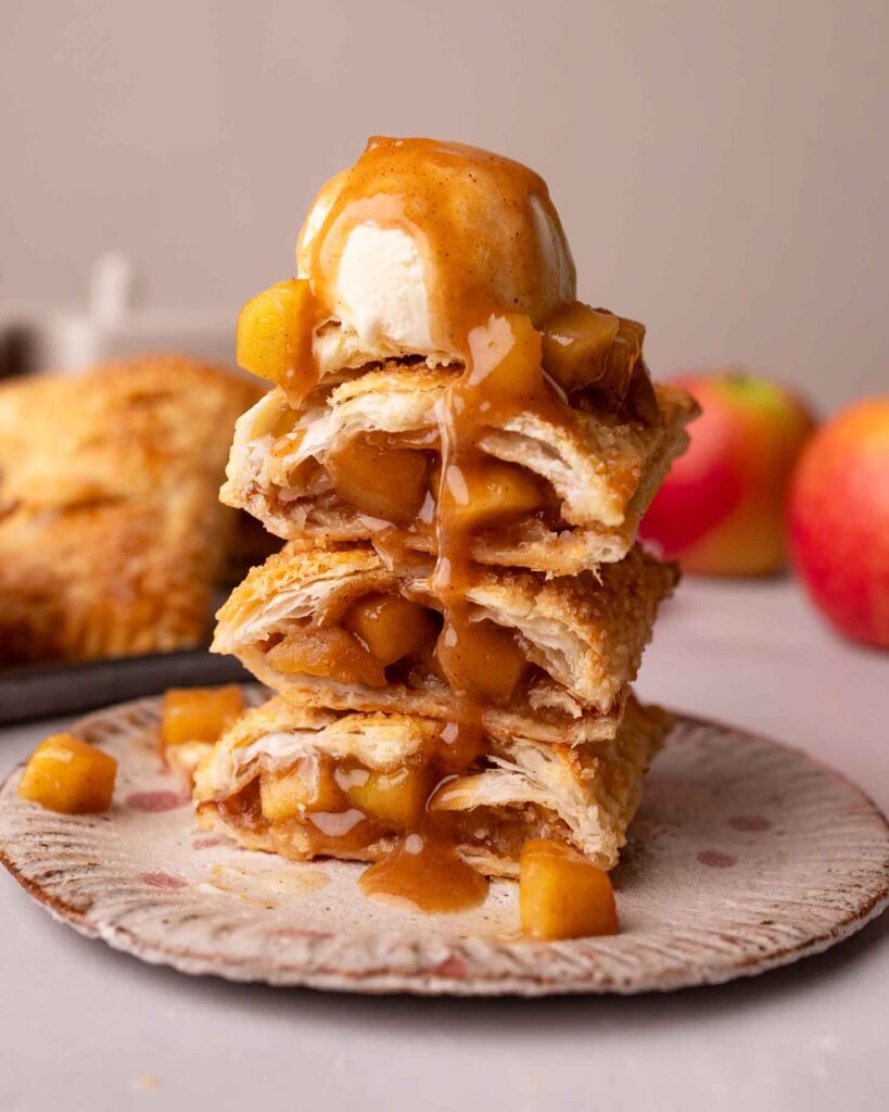 Izgledom podsjećaju na klasične McDonald’s pite, ali su pečene u pećnici, napravljene kod kuće i potpuno veganske. Hrskave izvana, sočne iznutra, savršene uz šalicu čaja ili kuglicu veganskog sladoleda.