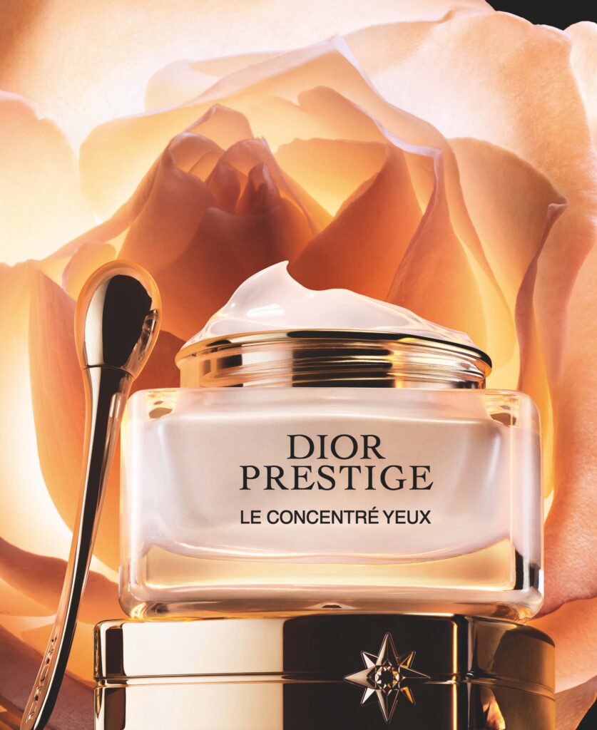 Dior je prepoznao te izazove i stvorio Dior Prestige Le Concentré Yeux, inovativnu njegu koja koristi kompleks Rosapeptide ™. Ovaj moćan kompleks kombinira regenerativne latice ruže iz Granvillea s peptidom koji potiče proizvodnju kolagena, pomlađujući kožu na tri razine – poboljšava sintezu ceramida, stimulira hidrataciju i povećava proizvodnju kolagena, što rezultira vidljivo čvršćom i mladolikijom kožom.