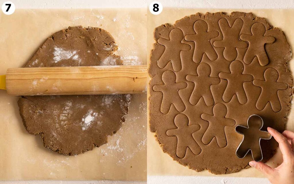 Kalupima za medenjake (ljudeki, zvjezdice, borovi…) izrezuj oblike i slaži ih na lim obložen papirom za pečenje. Ostatke tijesta ponovno kratko premijesi i razvaljaj. - Peci u prethodno zagrijanoj pećnici na 180 °C (gornje/donje grijanje):